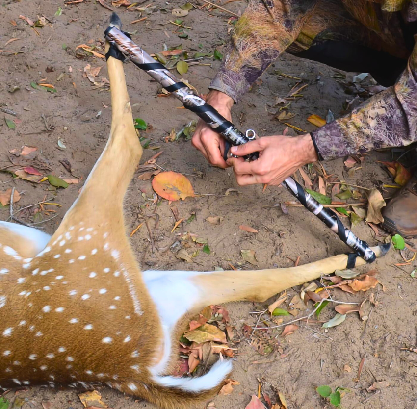 Use the GAME-BAR® to prop game legs apart for faster, cleaner field butchering. No slipping, no struggle — just smart, stable ground processing with polyester webbing.