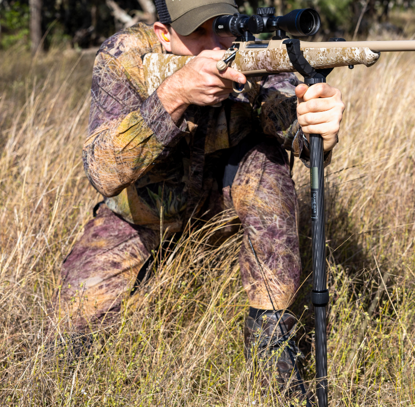 The V-Rest gives you stable support in kneeling, sitting, or prone positions. Lightweight and non-slip, it's ready in seconds for a clean, ethical shot when it counts. For added stability in a kneeling lunge position, use the SuperCinch™ webbing strap around your leg to tension and anchor the GAME-BAR® CARBON — giving you rock-solid control and fewer missed opportunities at longer ranges.