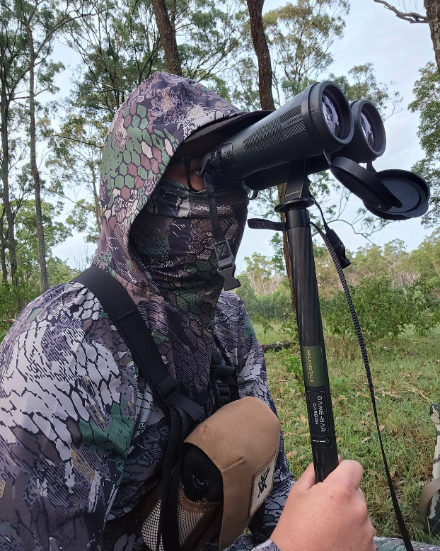 From trekking deep into the high country, glassing distant slopes, stabilising your shot, capturing field moments, dragging or propping game, to hoisting for clean processing — this ultralight (1.1kg packed including bags), compact system does it all.